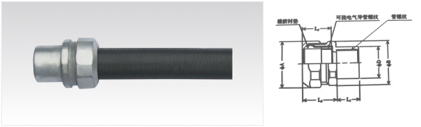 1、WUG防水型混合連接器與KV防水型、KVZ阻燃型可撓金屬電氣導(dǎo)管用螺紋方式連接,另一端與有螺紋鋼管連接。